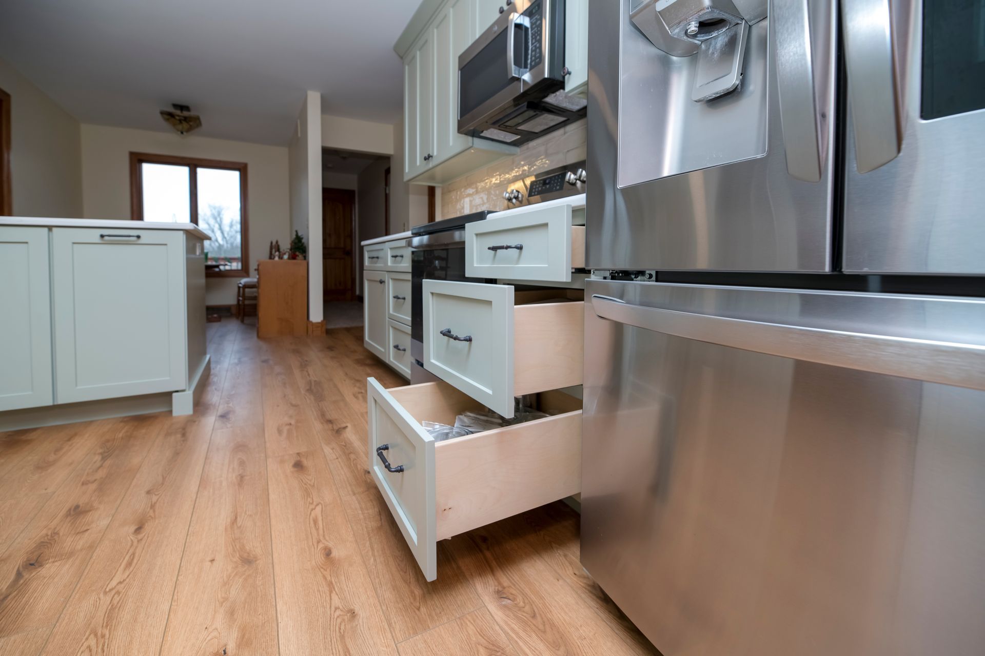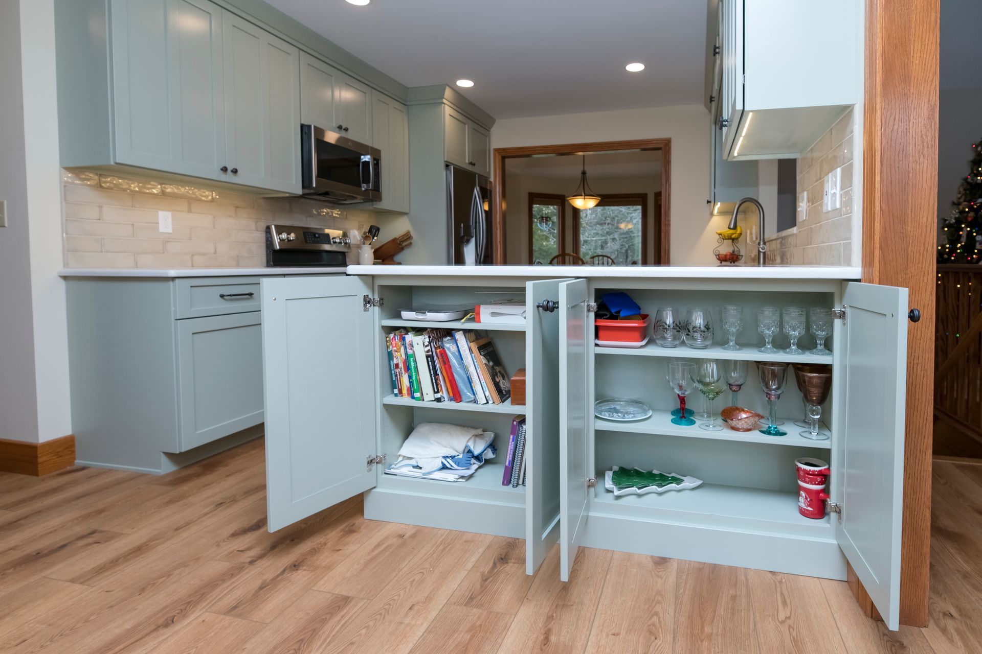 Dave and Anna have been involved in the Columbia Community for many years. They were wanting to update their Kitchen and Laundry room. Both rooms were lacking storage and organization. We designed and build the rooms with plenty of storage. We also created an opening in the the wall dividing the Kitchen and living room to open and brighten up the kitchen.