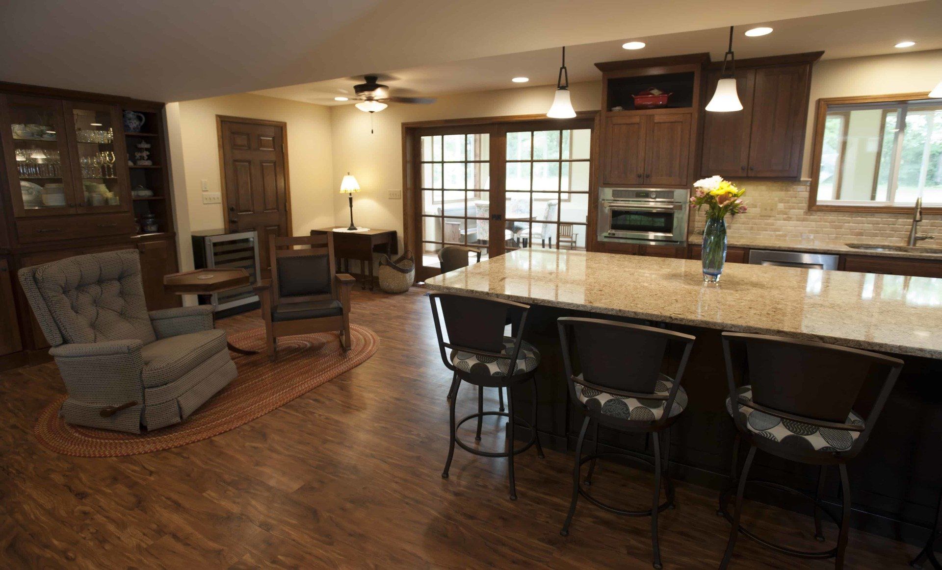 TThe remodel also included finishing out a sun porch previously used for storage. It is now a fully functional family room that serves as the new entrance to the kitchen/dining area.