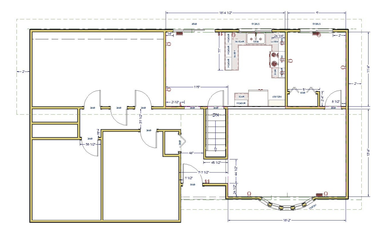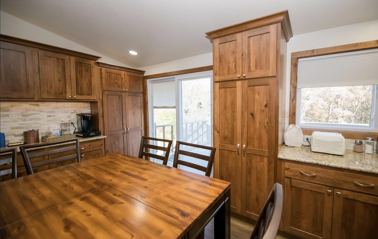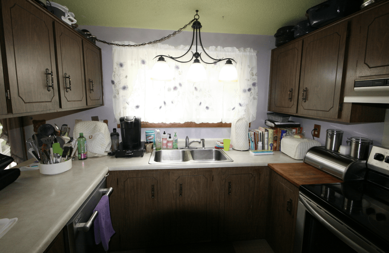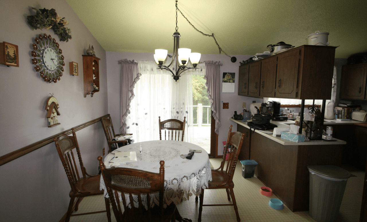 The existing kitchen space was dark and isolated. Chris and Rick Laughlin were ready to take down the dividing walls to create an open floorplan with a large kitchen and eat-in dining space. The walls that surrounded the stairway were also removed and aluminum railing added.