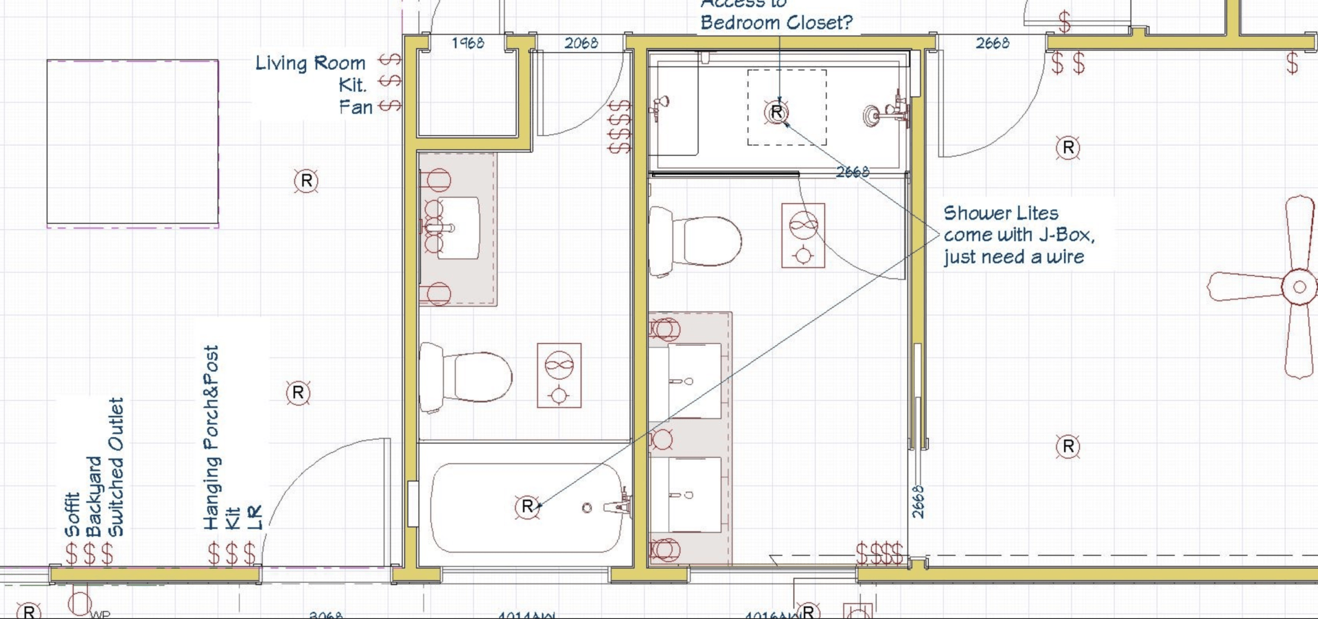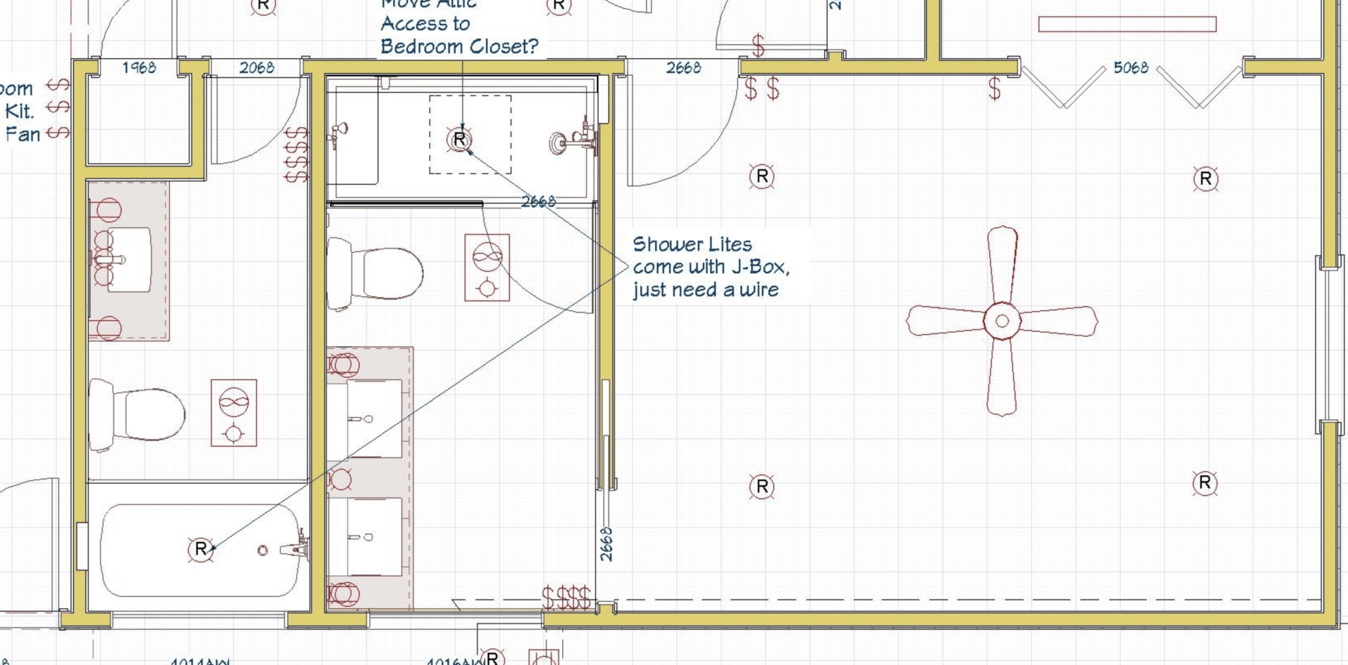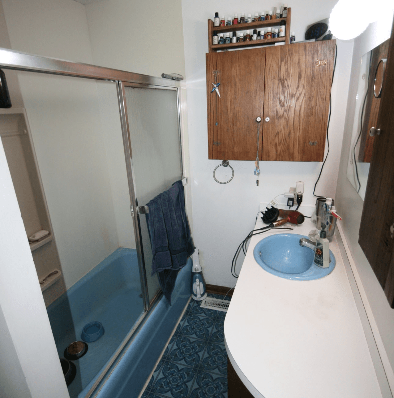 The arrangement of the space changed by removing 2 small closets and an offset. A large steam shower and spacious double sinks with medicine cabinets now occupy this master bath.
