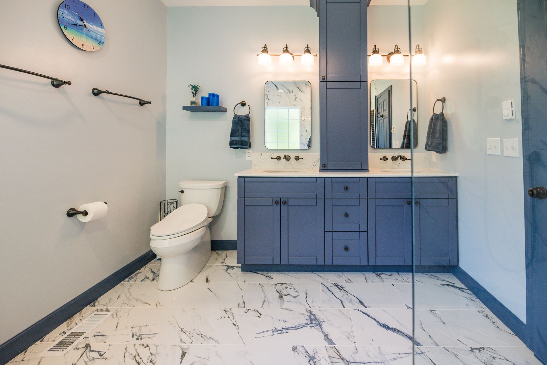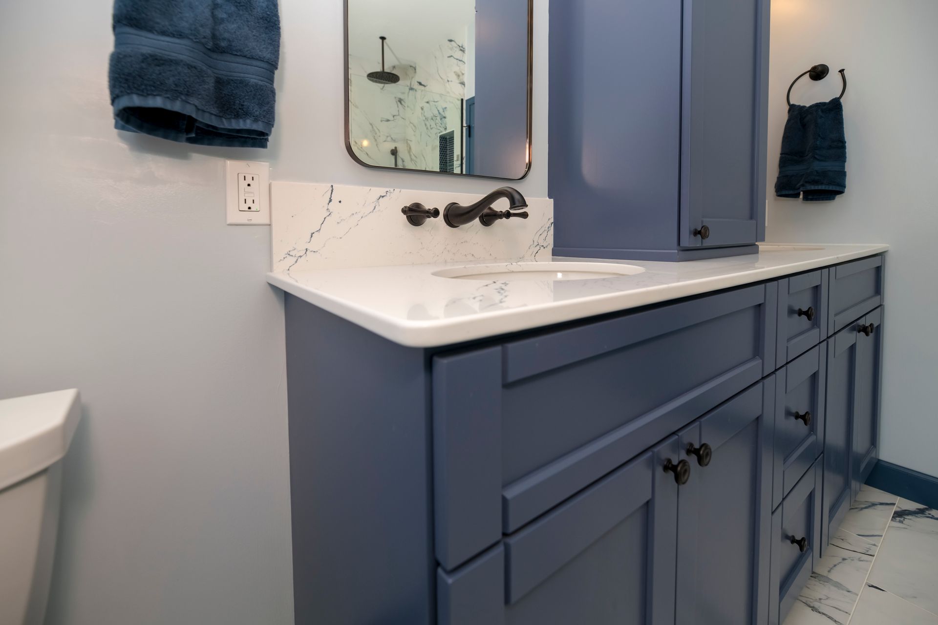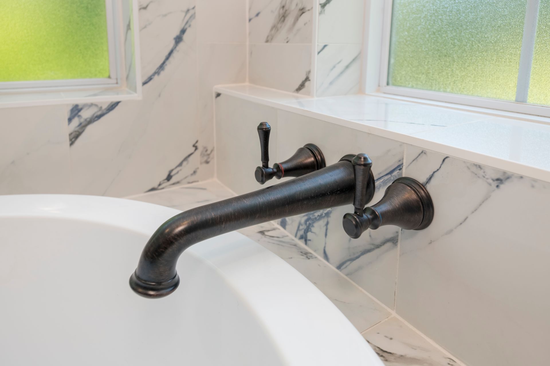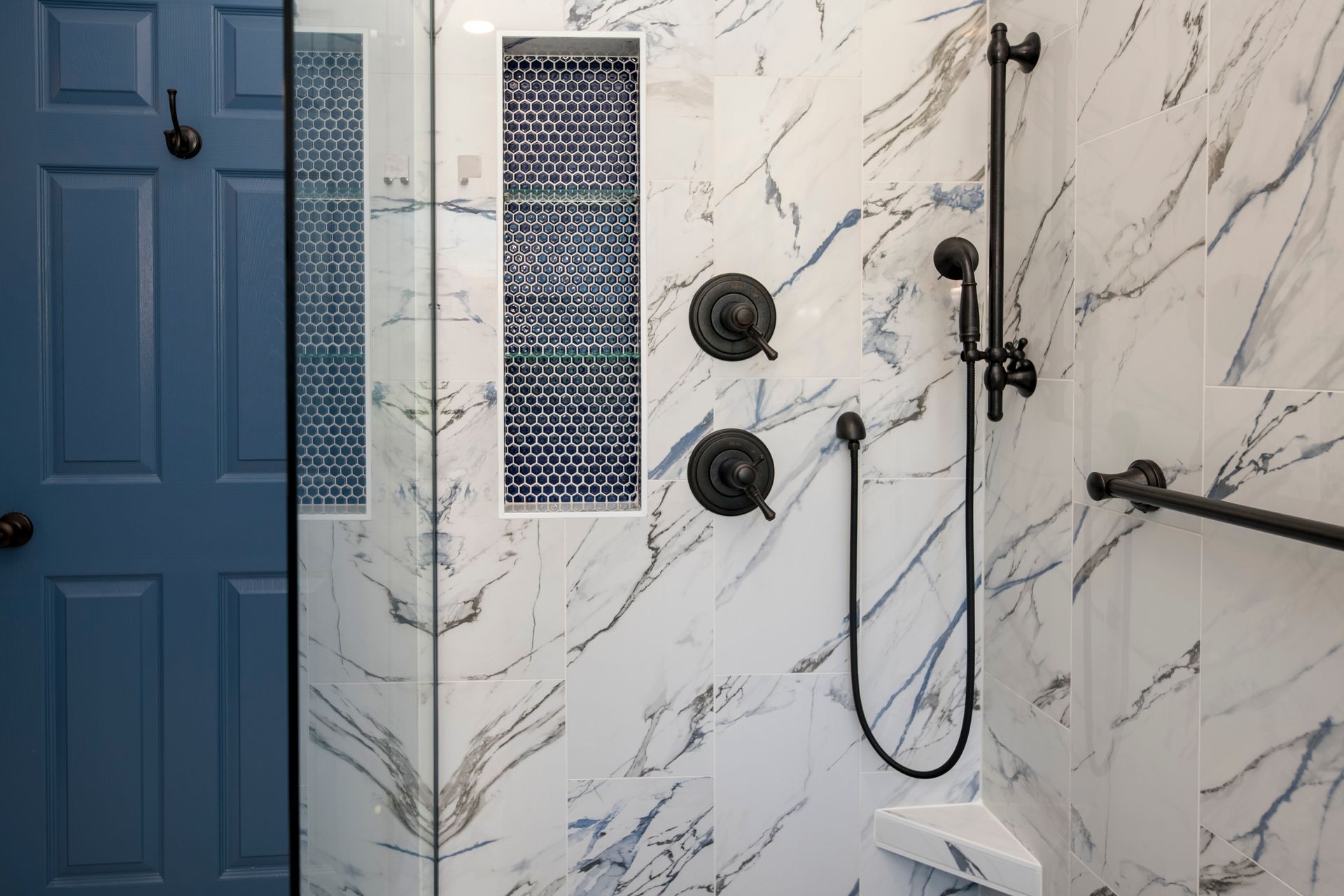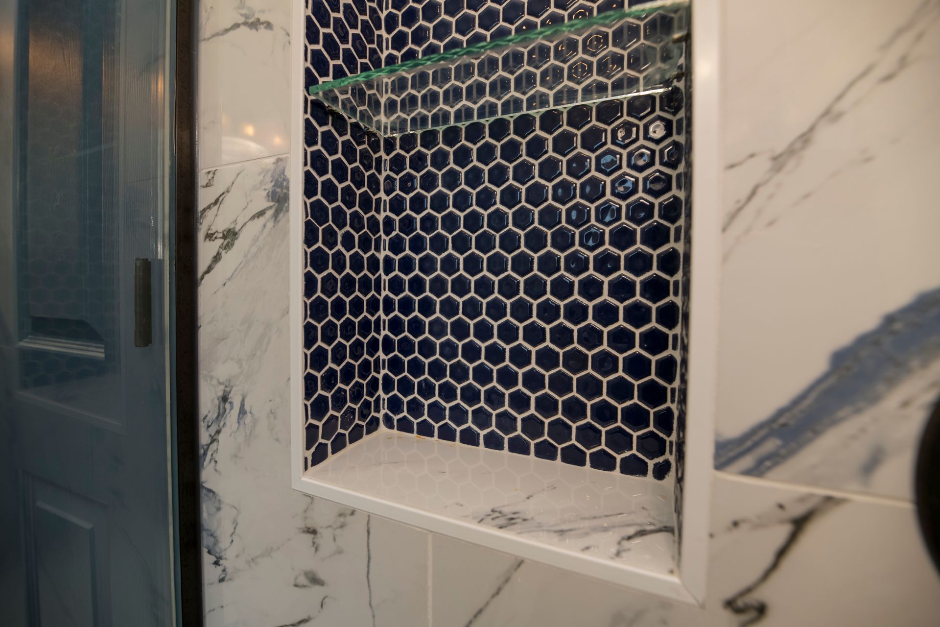 The Marshall master bath was a large room, but was overtaken by the corner jacuzzi tub. They were able to maximize space by removing the oversized jacuzzi tub and going back with a smaller Japanese Style Soaker tub and large walk-in tile shower. The white tile, light paint color and open concept shower really brightened up the room and made it feel bigger.